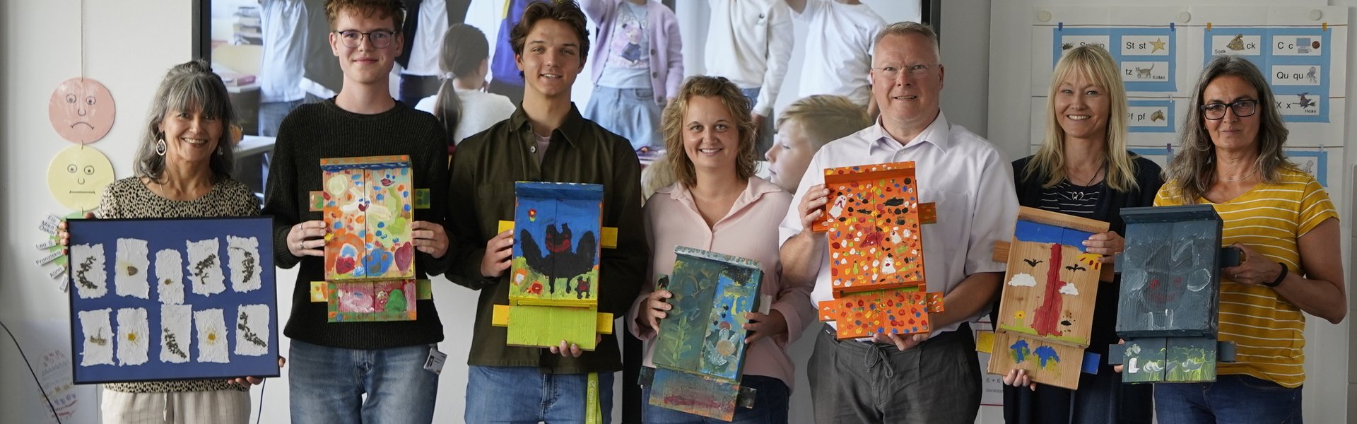Dies gelang Tim Cooper und Konrad Kallauch, FÖJler der Erdgas Südwest, mit speziell konzipierten Unterrichtsstunden an der Grundschule Heroldstatt. Die Kinder der ersten Klassen bemalten Nistkästen für Fledermäuse und erfuhren, wie, wo und warum sie die Tiere mit Nistmöglichkeiten unterstützen sollten. In den zweiten Klassen stand das Thema Müll, Plastik und Recycling auf den Stundenplänen: Neben einem Experiment zur richtigen Papierentsorgung ging es um Abfallvermeidung und Mülltrennung. Die dritten und vierten Klassen widmeten sich dem Energiesparen im Alltag und machten bei einer Challenge direkt Einsparpotenziale im Schulgebäude aus.